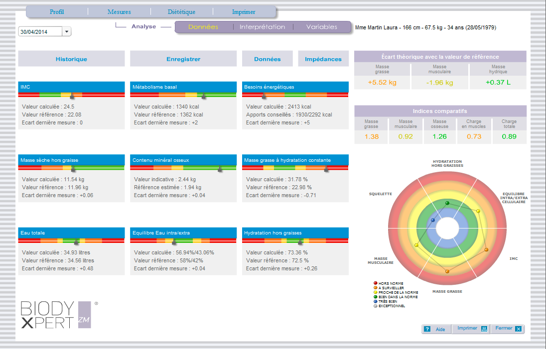 Grâce à son interface graphique didactique, analysez simplement toutes les composantes de l'organisme.
