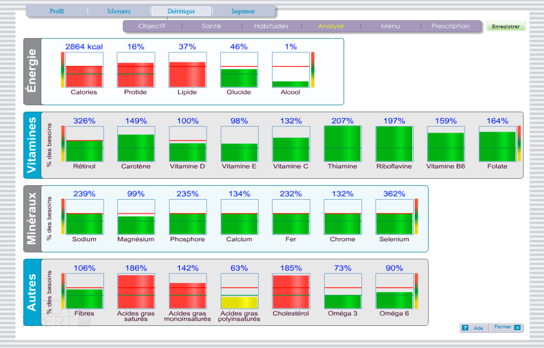 L'enquête alimentaire saisie en ligne par vos patients est analysée par le logiciel pour obtenir gleur bilan nutritionnel.