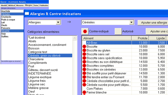 Les aliments qui provoquent une allergie chez votre patient sont automatiquement écartés des conseils alimentaires lors de la réalisation des menus manuels ou assistés par ordinateur.