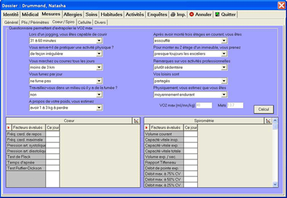Ce module permet d'évaluer le VO²max d'un patient à partir d'un questionnaire et de ses données anatomo-physiologiques.